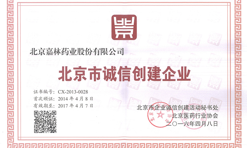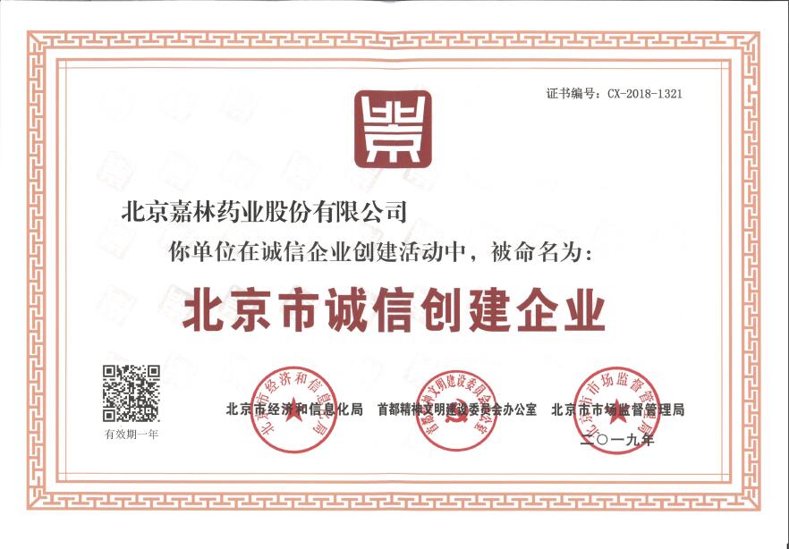 公司被命為“北京市誠信創(chuàng)建企業(yè)”