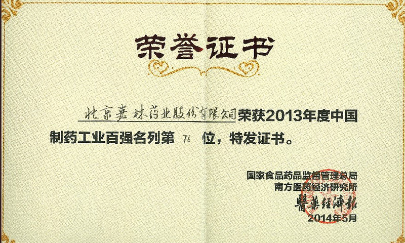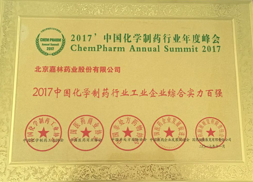 北京嘉林藥業(yè)榮膺“新中國成立70周年醫(yī)藥產(chǎn)業(yè)標(biāo)桿企業(yè)”