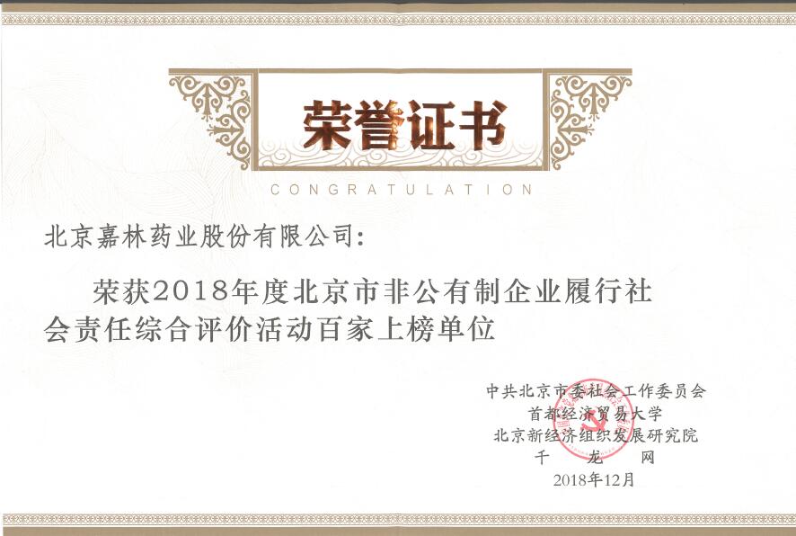 公司被評為2018北京民營企業(yè)社會責(zé)任百強企業(yè)